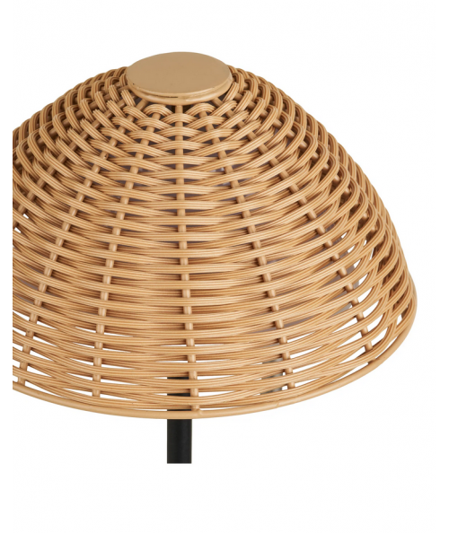 Wigan bordlampen er en dekorativ og genopladelig lampe, der kombinerer naturlige materialer med moderne funktionalitet. Den flettede lampeskærm i naturfarvet PE giver et varmt og levende udtryk, mens den sorte metalfod skaber en elegant kontrast og giver lampen et let og stilrent look. Resultatet er en bordlampe, der passer smukt ind i både moderne, nordiske og mere afslappede uderum.