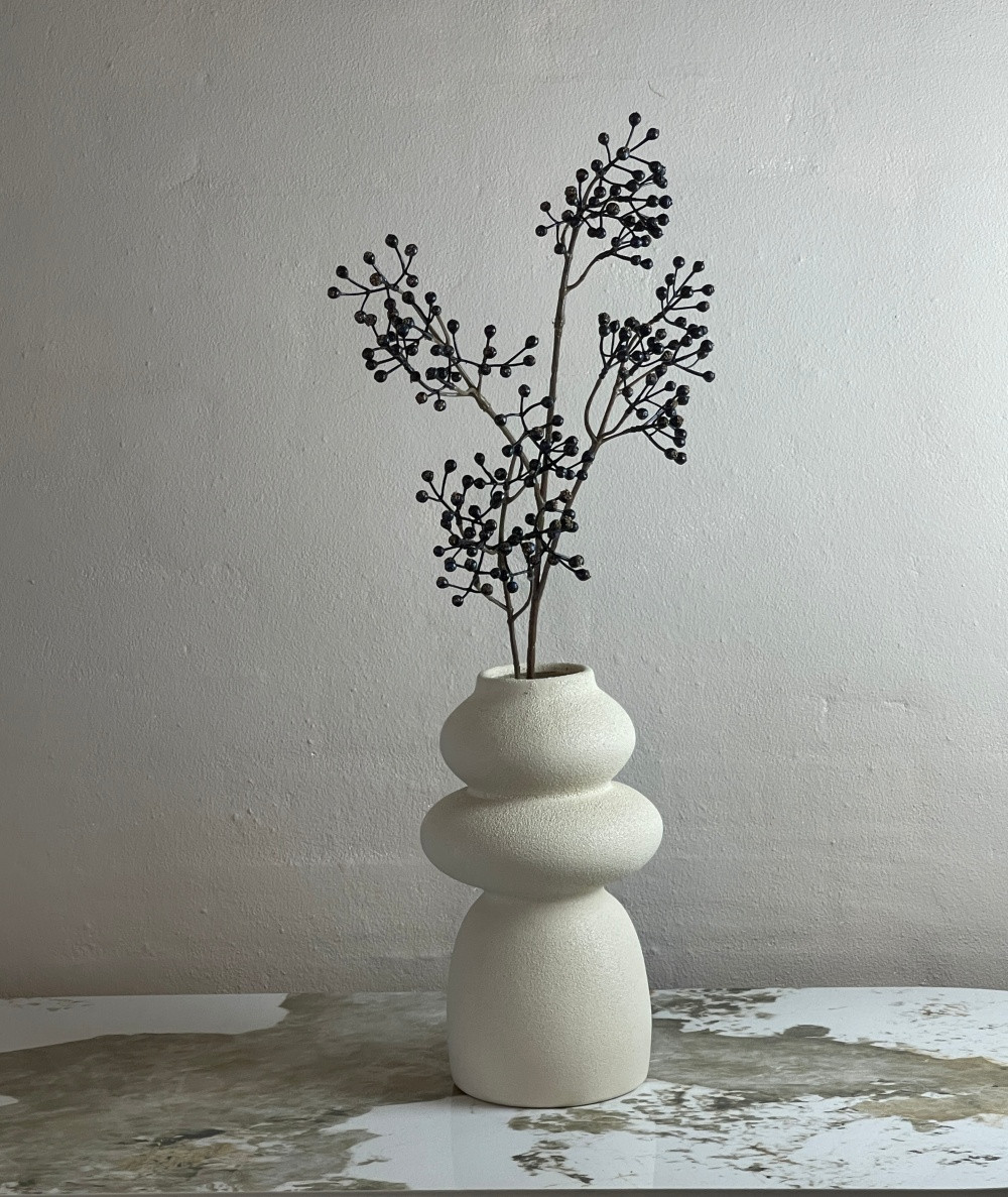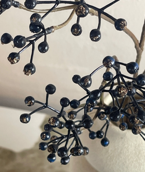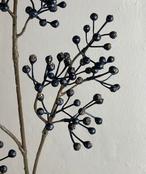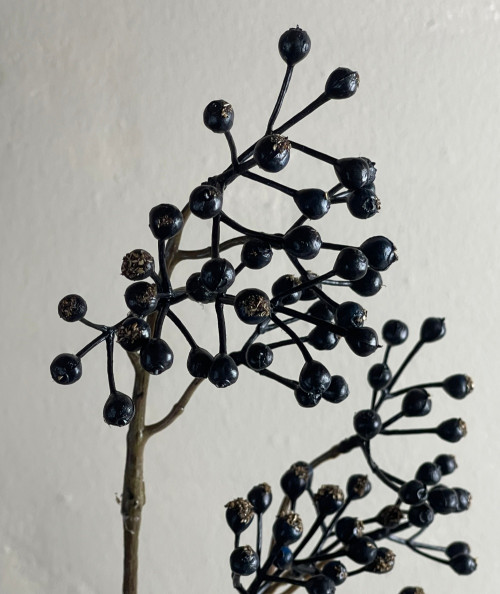 Den fungerer perfekt alene i en vase som et enkeltstående statement, men kan også kombineres med blomster og grene i lysere farver for at skabe en smuk kontrast. De mørkeblå bær bringer dybde og balance til enhver buket og passer lige så godt til moderne, stilrene hjem som til mere klassiske omgivelser.