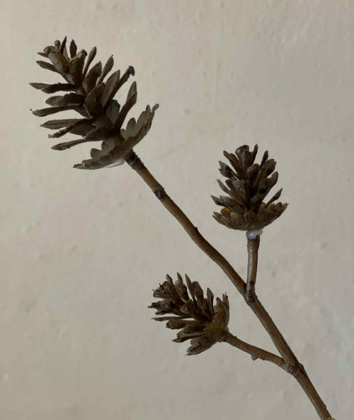 Sæt et par koglegrene i en skulpturel vase på spisebordet eller på en hylde, hvor de kan stå som et lille kunstværk i sig selv. De giver en nordisk og organisk fornemmelse og er smukke både alene og sammen med andre evighedsblomster. I juletiden kan de bruges som en del af dekorationer med lys og gran, eller du kan lade dem stå alene og skabe et roligt udtryk, der minder om vinterens natur.
