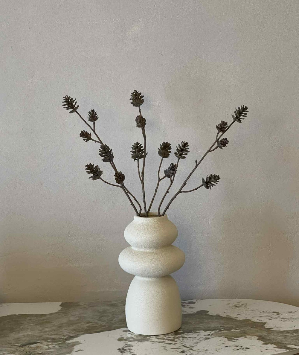 Skab en rolig og naturlig stemning i hjemmet med disse smukke evighedsgrene med små kogler. De har et enkelt og autentisk udtryk, som gør dem perfekte i både minimalistiske og mere varme, personlige indretninger. Grenene holder sig smukke år efter år, helt uden pleje, og passer derfor perfekt til dig, der ønsker naturlig skønhed, der varer ved.