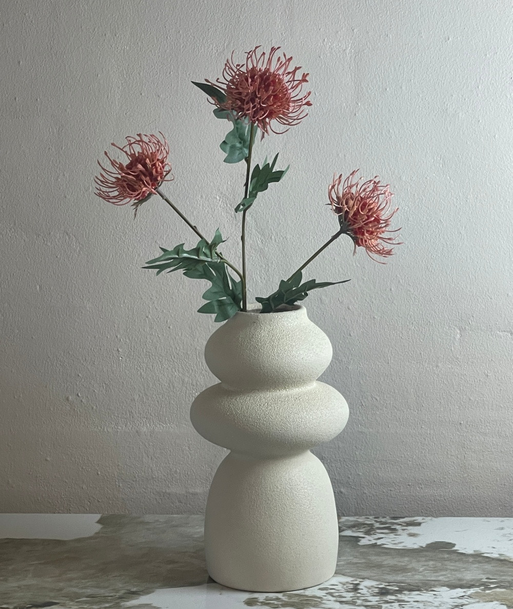 Proteaen er ideel som centerpiece i en vase, hvor dens dramatiske form står alene og udstråler styrke og elegance. Den kan også kombineres med grønne grene og andre blomster for at skabe en moderne og spændende buket, der emmer af stil og personlighed.