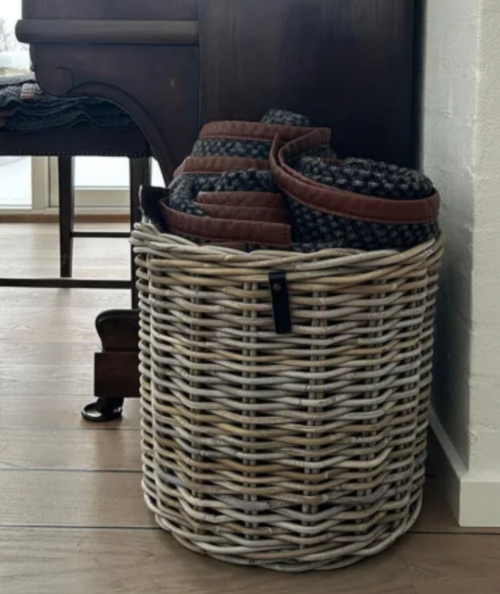 Denne runde rattankurv fra A2 Living kombinerer solid kvalitet med et varmt og roligt udtryk. Den er flettet i hånden af Kubu Grey rattan, og det ses tydeligt i den levende overflade og de smukke variationer i materialet. Her er ikke tale om maskinel ensartethed, men om ægte håndværk, hvor hver kurv har sit eget særpræg.