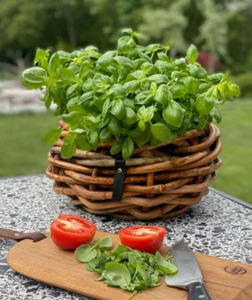 En lille A2 living kurv som denne kan ændre stemningen på et øjeblik. Den samler blomster, krydderurter eller dekorationer og giver et varmt, naturligt udtryk, uden at fylde for meget.