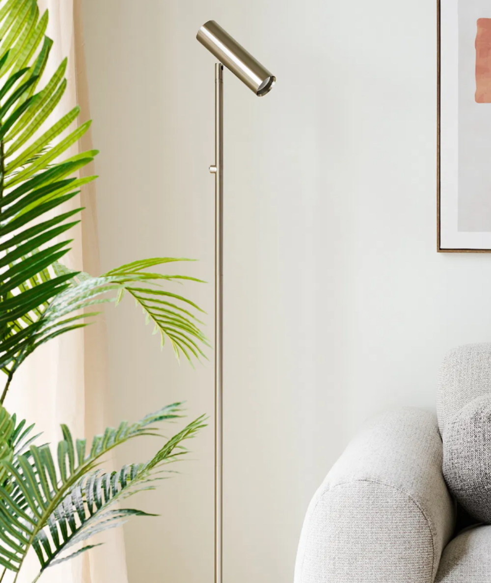 Paris gulvlampen er indbegrebet af enkel elegance og funktionelt design. Med sit slanke udtryk i børstet sølv og rene linjer passer den smukt ind i både moderne og klassiske indretninger. Lampen står let og diskret i rummet, men tilfører samtidig et sofistikeret og eksklusivt præg, uanset om den placeres ved sofaen, lænestolen eller i et hyggeligt læsehjørne.