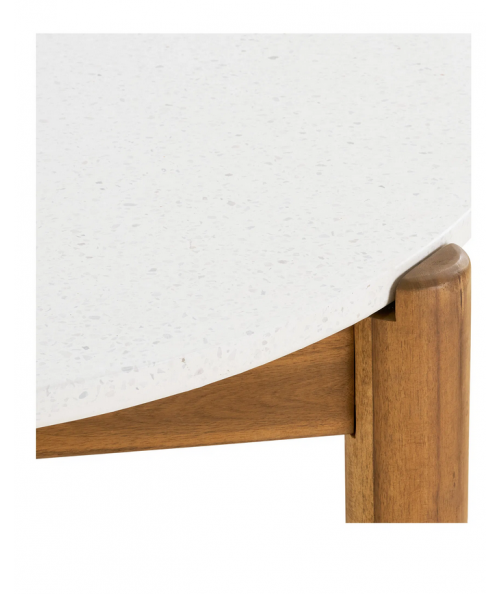 Materialevalget gør bordet både robust og æstetisk. Akacietræet er kendt for sin styrke og naturlige modstandsdygtighed, mens terrazzo-overfladen er solid og nem at holde ren. Bordets tyngde og stabile konstruktion giver en følelse af kvalitet og ro, så det står sikkert, selv når haven summer af liv.