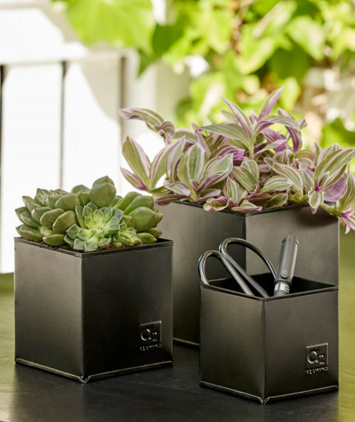 Et enkelt og dekorativt sæt urtepotter, der gør det let at tilføre haven et stilrent og moderne præg.