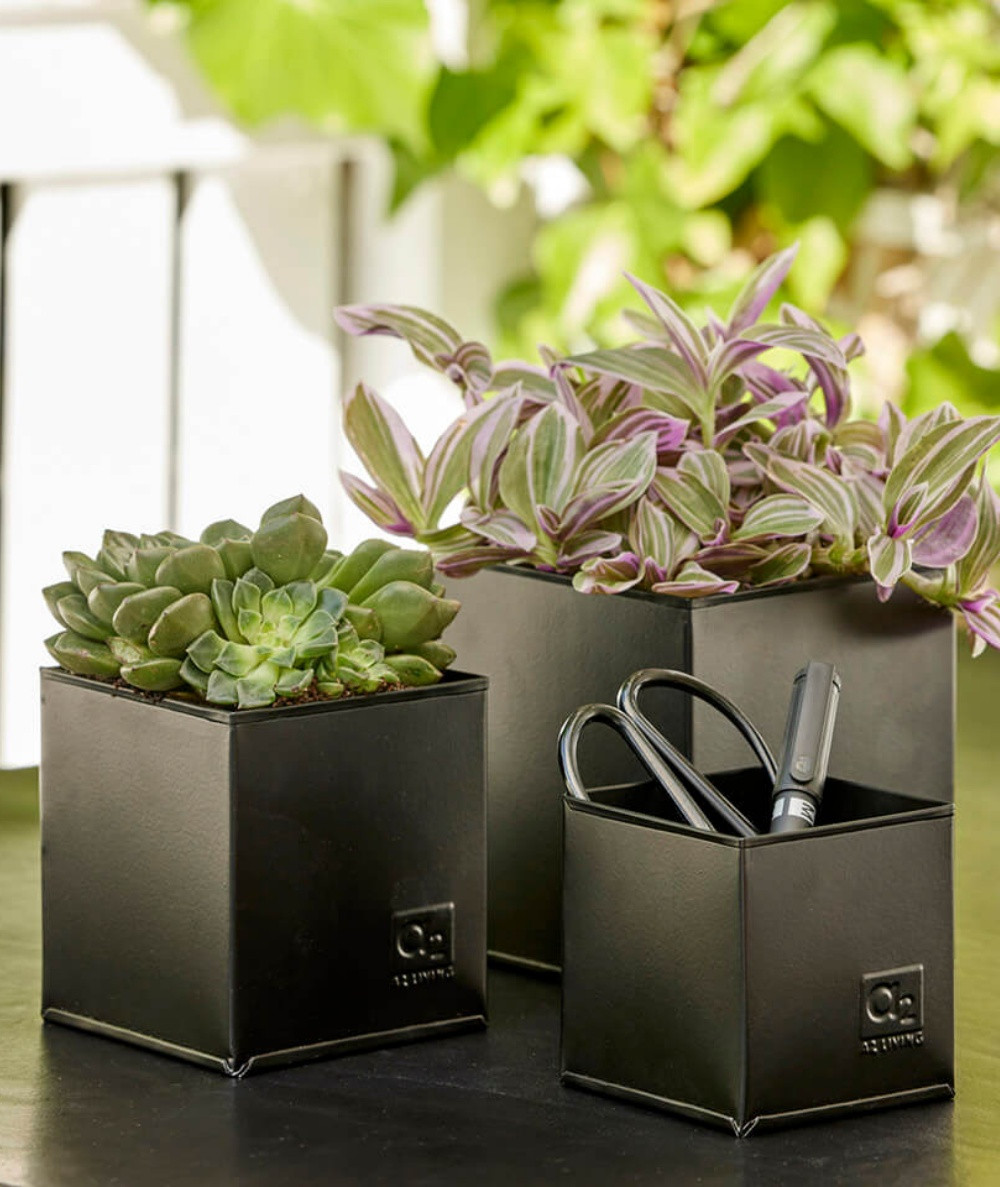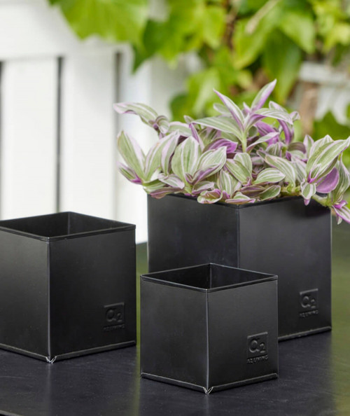 A2 living firkantet sort urtepotte sæt m. 3 stk.