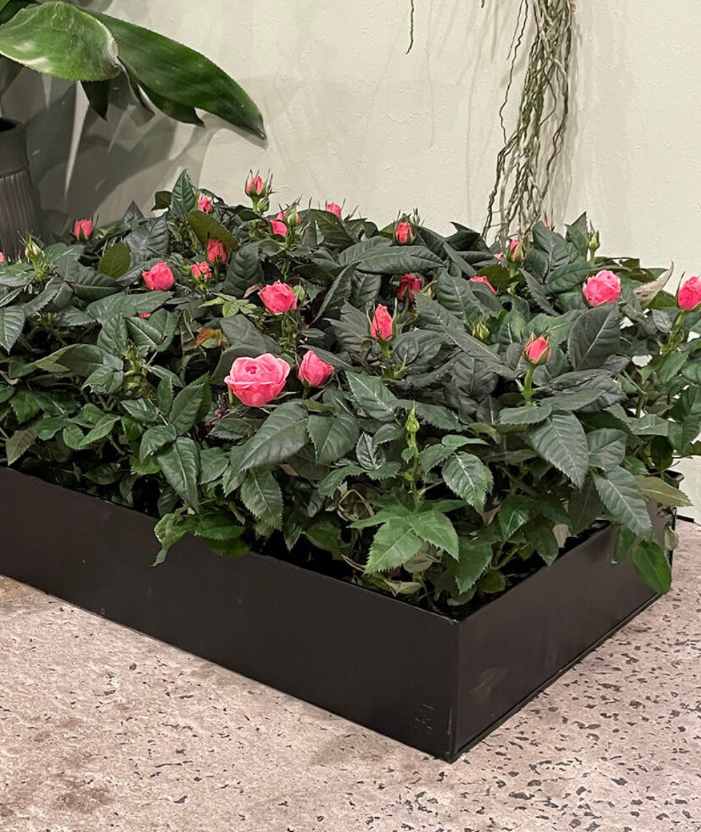De lange plantebakker er ideelle til krydderurter, hvor du kan plante eksempelvis basilikum, timian og rosmarin i samme bakke og skabe en lille duftende urtehave tæt på køkkenet. De egner sig også perfekt til blomstrende planter, prydgræsser eller små stauder, som kan skabe et frodigt og naturligt udtryk.