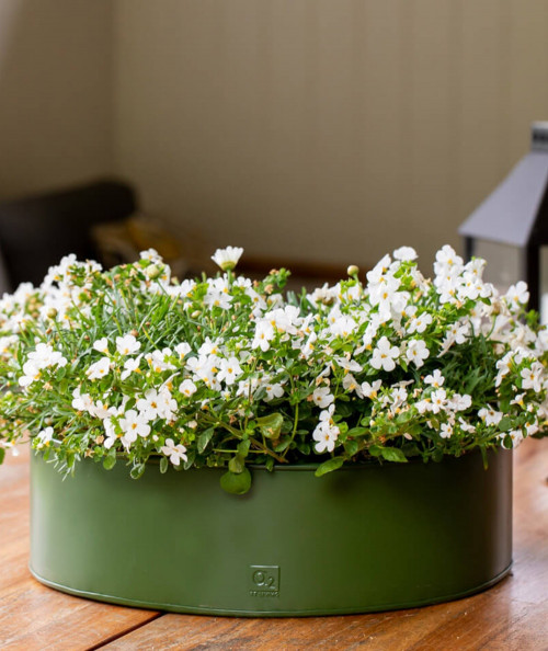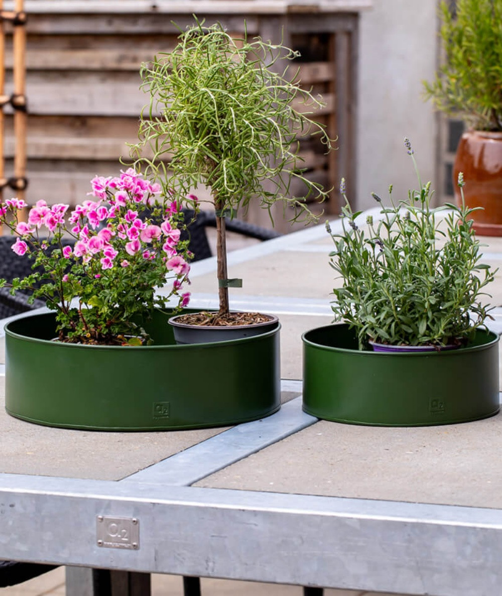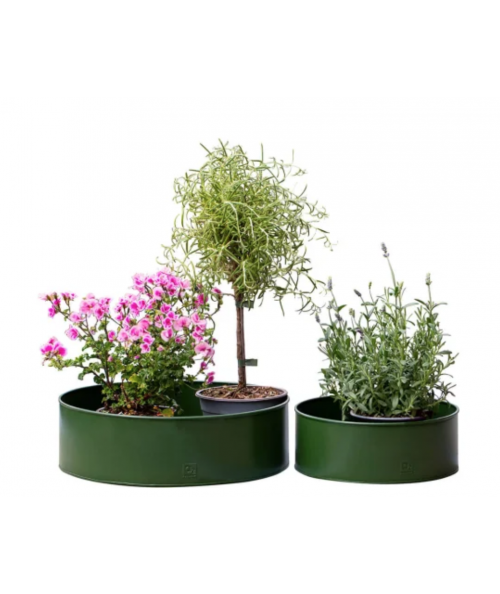 Den olivengrønne farve har en særlig evne til at falde naturligt ind i havens omgivelser. Disse runde plantebakker skaber en rolig og harmonisk ramme om dine planter og giver mulighed for at samle flere planter i én smuk opstilling.