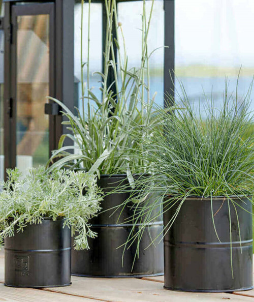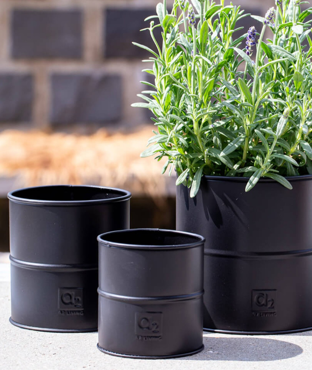 Den sorte pulverlakerede overflade giver potterne et enkelt og elegant udtryk, som fremhæver planternes farver og former. Det mørke metal skaber en flot kontrast til grønne blade, duftende krydderurter eller blomster i alle farver og passer smukt ind i både moderne og mere klassiske uderum.