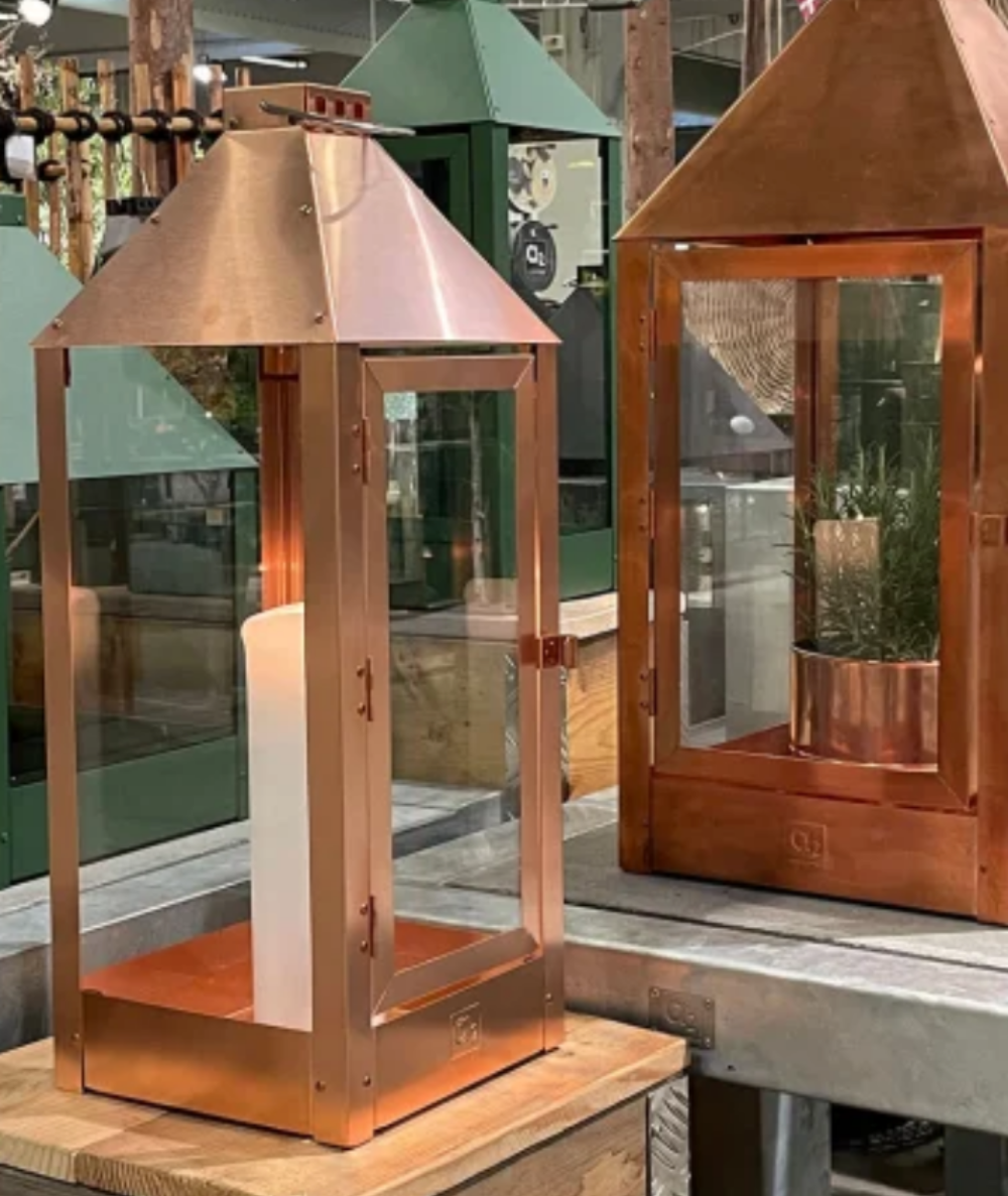 Kobber er et levende naturmateriale, som udvikler sig med tiden. Lanternen leveres med en blank og varm overflade, men vil gradvist ændre udtryk, når den udsættes for luft og vejr. Over tid opstår en smuk patina, der giver lanternen et mere råt og eksklusivt udseende. Denne naturlige forandring gør hver lanterne unik og bidrager til dens charme.