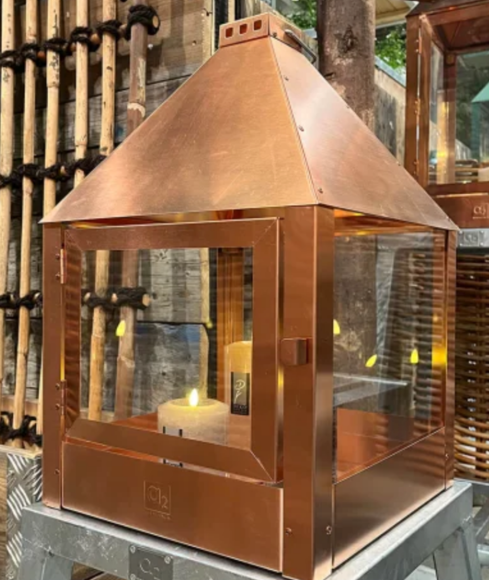 Kobber er et levende materiale, der udvikler sig med tiden. Lanternen leveres med en blank og varm overflade, men vil gradvist ændre karakter, når den udsættes for luft, fugt og vejr. Over tid får kobberet en smuk patina, som giver lanternen et mere rustikt og personligt udtryk. Denne naturlige proces er en del af materialets charme og betyder, at hver lanterne får sit helt eget særpræg.
