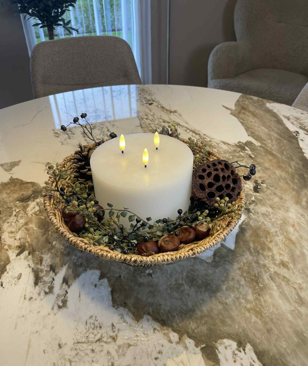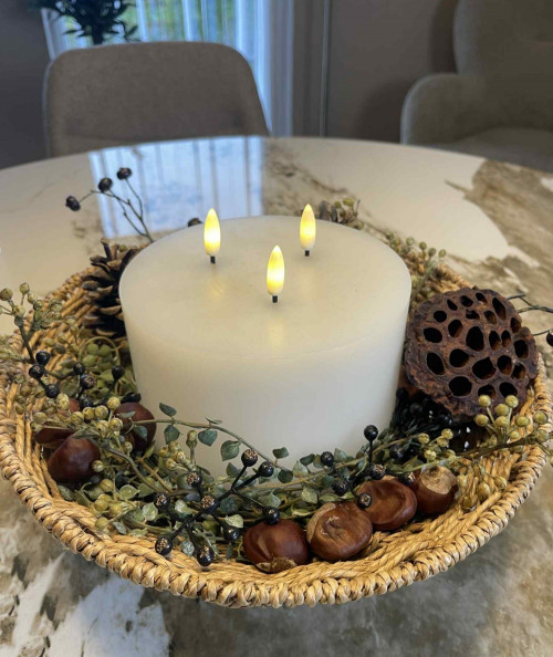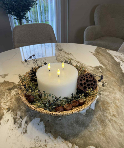 Bring elegance og hygge ind i dit hjem med dette smukke LED bloklys med tre flammer. Lyset har et enkelt og tidløst design, der gør det nemt at integrere i enhver indretning. De tre livagtige LED-flammer giver et blødt, flakkende skær, som skaber en varm og indbydende stemning – helt uden røg, brandfare eller stearinrester.