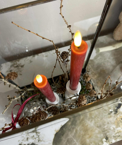 LED stagelys i varm rød - klassisk julehygge med moderne twist