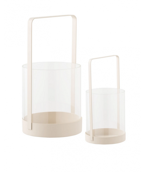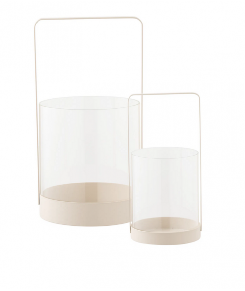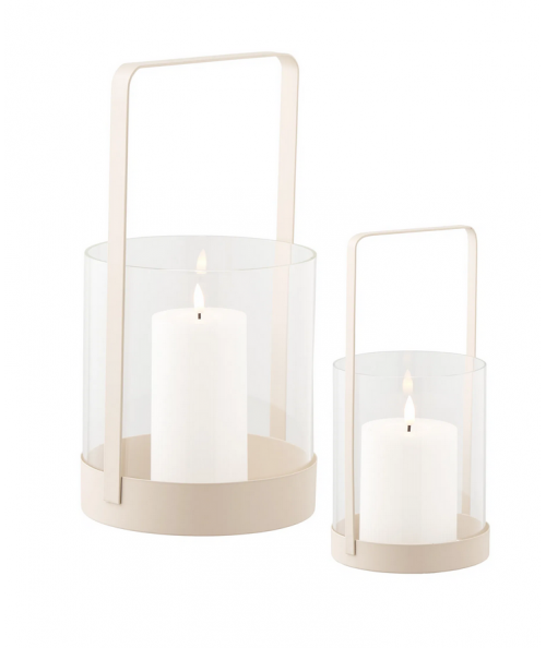 Lysestagerne leveres som et sæt med to størrelser, der komplimenterer hinanden perfekt og giver et levende, men stadig afbalanceret udtryk. Sammen skaber de dybde og variation, uanset om de står på sofabordet, i vindueskarmen eller som en stemningsfuld detalje på terrassen. Den beige farve tilfører et naturligt og afdæmpet look, der gør det nemt at kombinere lysestagerne med både træ, tekstiler og andre varme nuancer i indretningen.