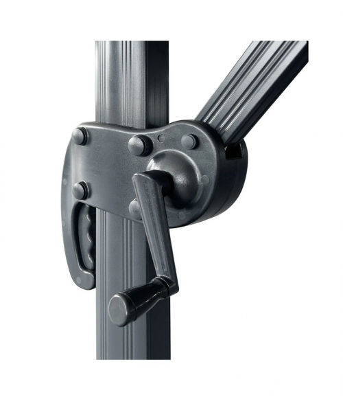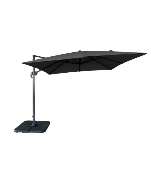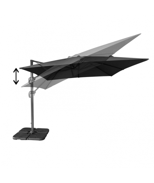 Baza hængeparasol er skabt til dig, der ønsker både funktion og æstetik i dit uderum. Med sit stilrene sorte design og den smarte hængefunktion giver parasollen en rolig og moderne stemning i haven, på terrassen eller i gårdhaven. Den store parasol på 295 x 295 cm skaber behagelig skygge, samtidig med at den åbne plads under dugen giver dig frihed til at indrette, som du har lyst – uden en generende stolpe midt på bordet.