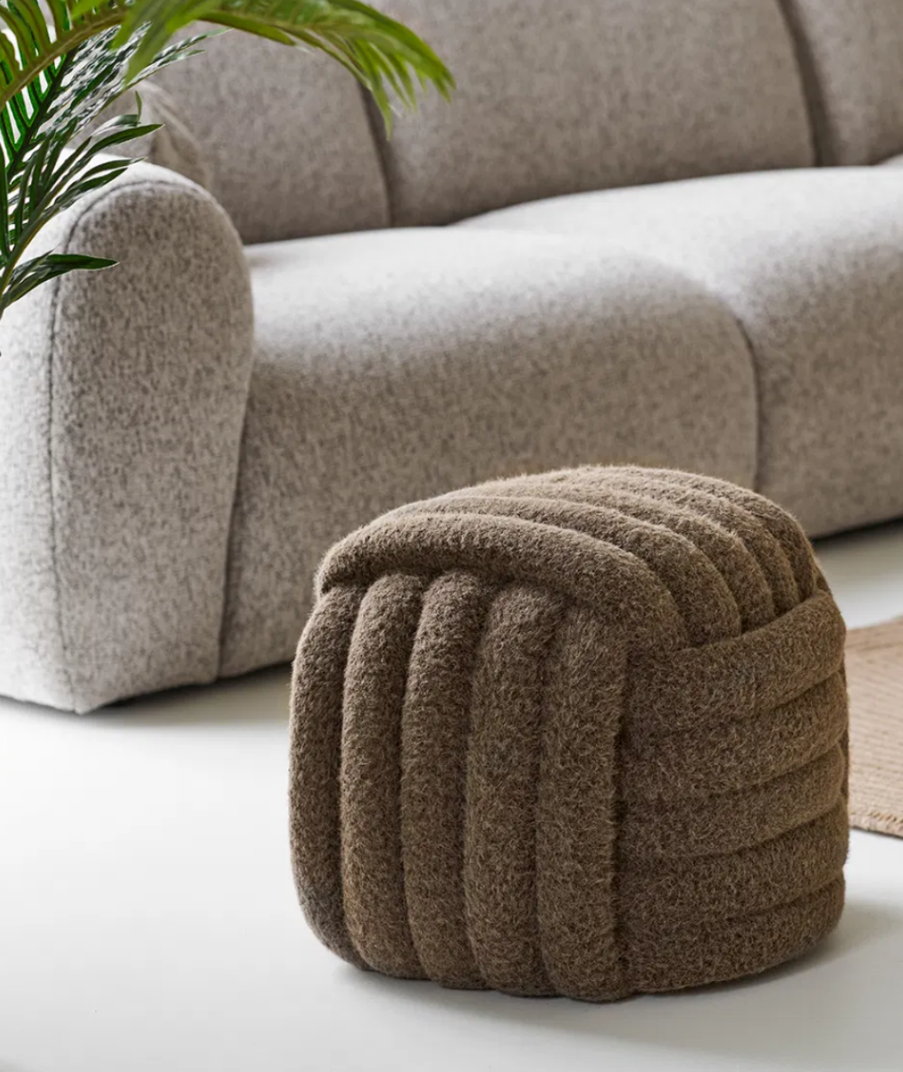 Napier Puff er en blød og komfortabel puff med et moderne, flettet design, der giver et varmt og indbydende udtryk i indretningen. Den smukke brune farve passer perfekt ind i både nordiske og mere moderne hjem og tilfører rummet tekstur og personlighed.