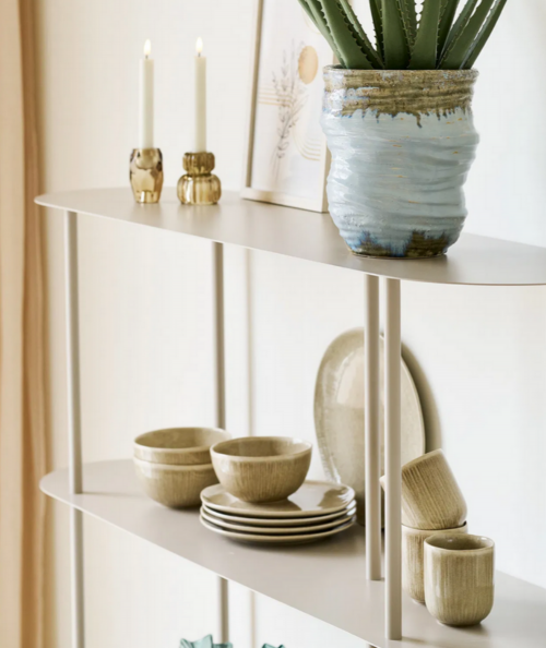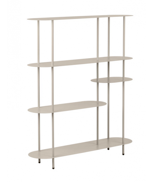 Nelli reolen er et stilrent møbel, der kombinerer funktionel opbevaring med et let og moderne udtryk. Det asymmetriske design skaber liv og dynamik i indretningen, mens den rolige sandfarve giver reolen et blødt og eksklusivt look, der passer perfekt ind i både nordiske og minimalistiske hjem.