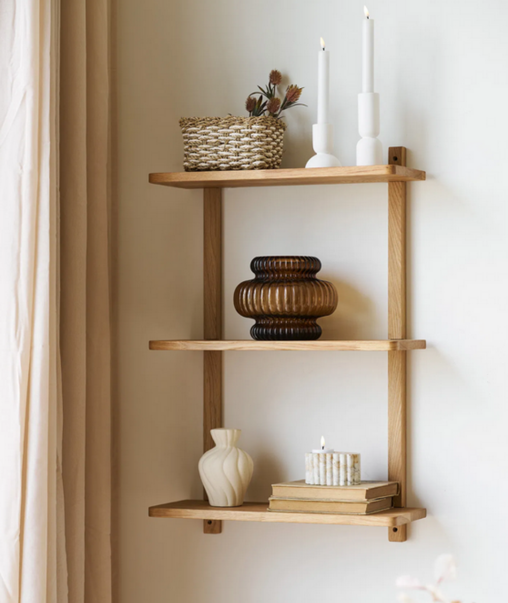 Væghylde i egetræ med 3 hylder