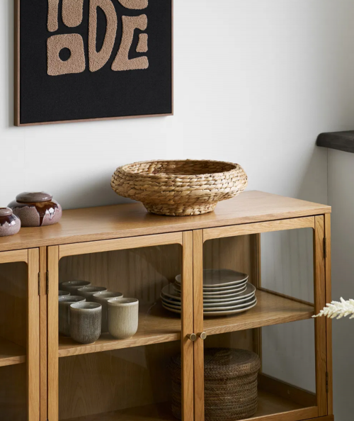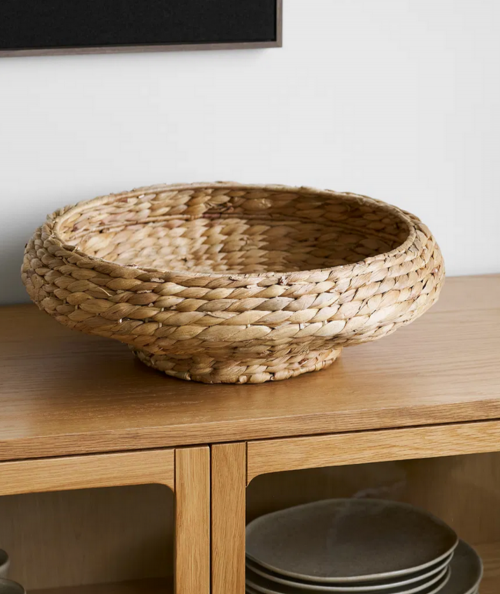 Frellesvig fad er et smukt og roligt indslag i indretningen, hvor naturmaterialer og enkelt design går hånd i hånd. Fadet er flettet i vandhyacint, hvilket giver et varmt, organisk udtryk og en let struktur, der tilfører rummet dybde og autenticitet. Den naturlige farve gør det nemt at integrere fadet i både nordiske, boheme-inspirerede og mere minimalistiske hjem.