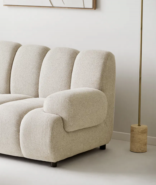 Taza 2,5 personers modulsofa er skabt til dig, der ønsker både komfort og et eksklusivt, roligt udtryk i stuen. Sofaens bløde former og indbydende polstring giver et elegant, næsten skulpturelt look, som passer perfekt ind i den moderne nordiske indretning.