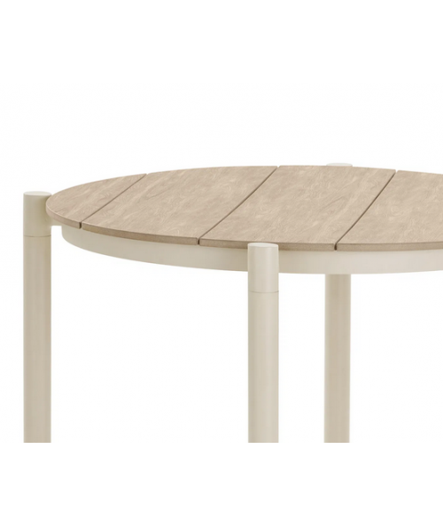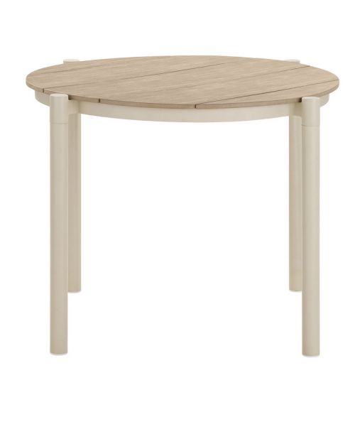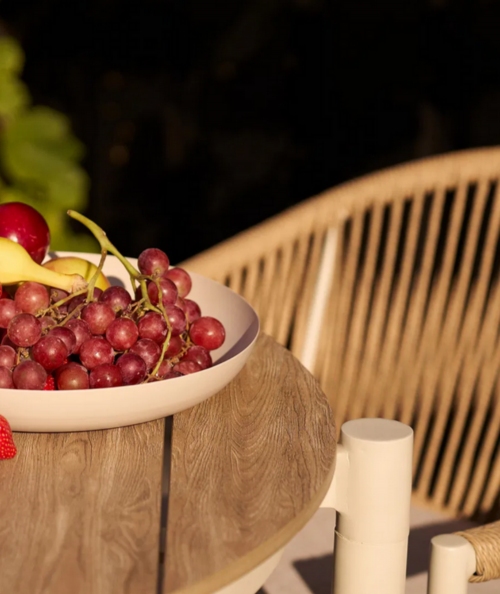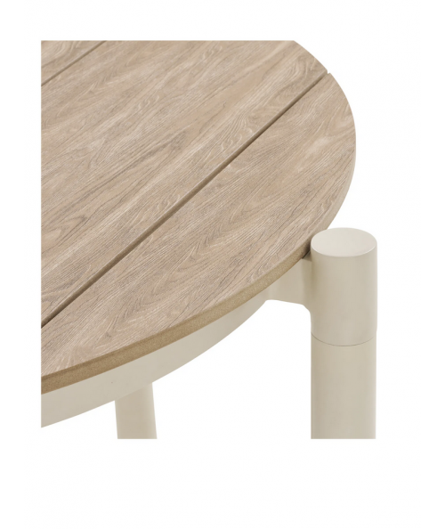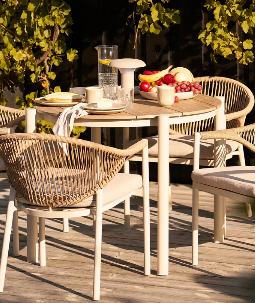 Abela spisebord er et elegant og tidløst bord, der skaber de perfekte rammer for udelivet. Det runde design giver en naturlig ro og inviterer til nærvær, samtaler og hyggelige stunder, hvad enten det er morgenkaffe i solen eller lange sommeraftener med familie og venner. Den lyse kombination af sandfarvet aluminium og naturfarvet nonwood tilfører haven et let og harmonisk udtryk, der passer smukt ind i både moderne terrasser og mere klassiske uderum.