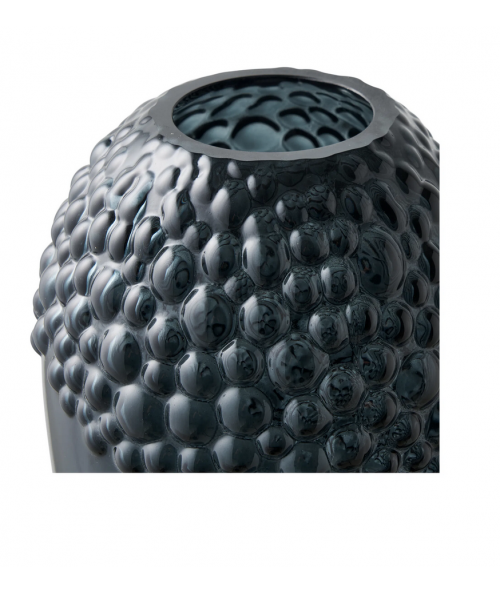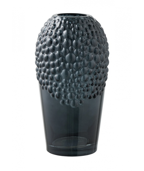 Denne mørkegrå glasvase er et dekorativt statement, der tilfører rummet karakter og dybde. Den organiske, boblede overflade skaber et levende spil i glasset og giver vasen et næsten skulpturelt udtryk, som fanger blikket – både i dagslys og i aftenbelysning. Den mørkegrå farve virker rolig og sofistikeret og passer perfekt ind i moderne, nordiske hjem, hvor materialer og tekstur får lov at tale for sig selv.